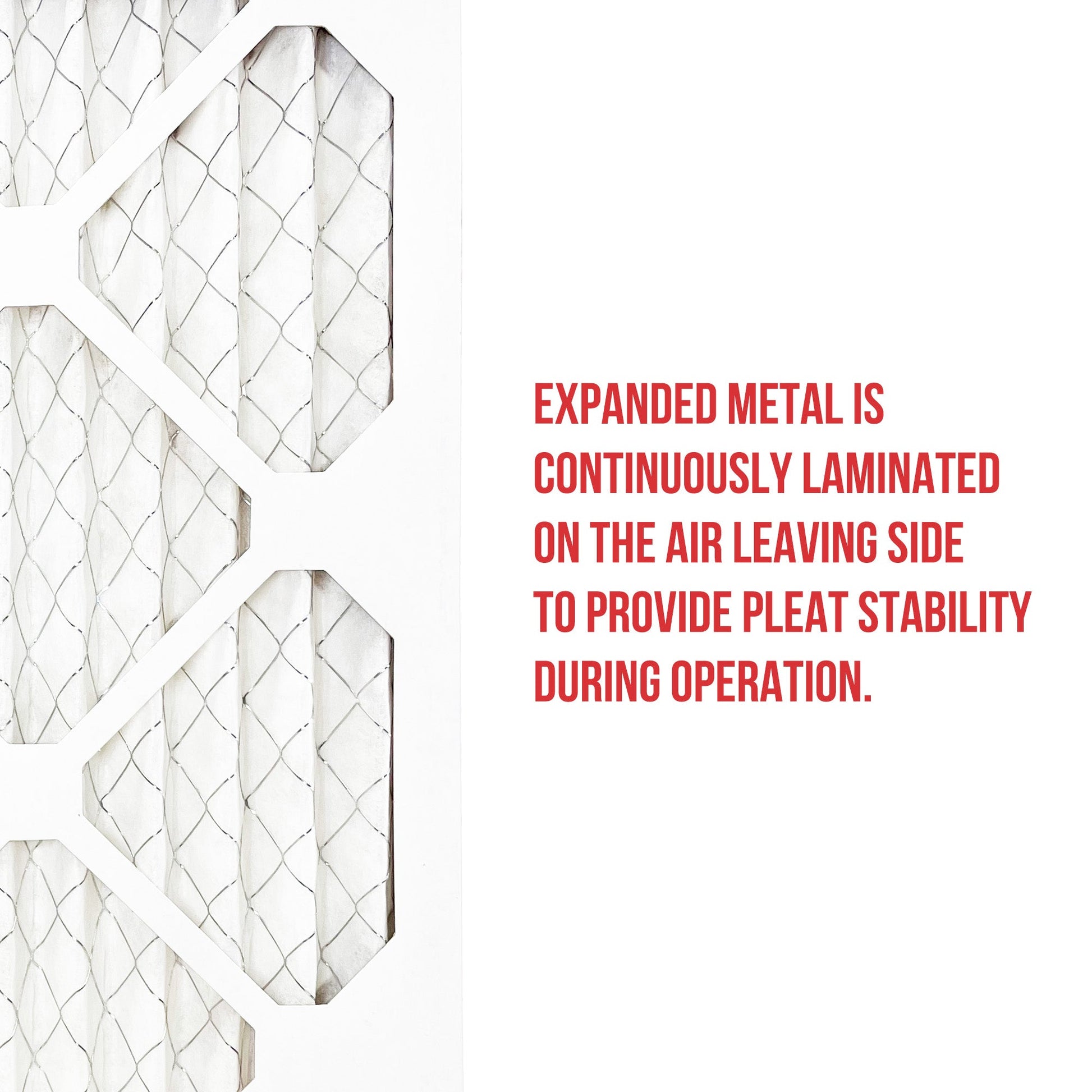 • Expanded metal is continuously laminated on the air leaving side to provide pleat stability during operation. Pleat shape is maintained allowing full media utilization which improves dust holding capacity. reinforces the air filter media for consistent performance